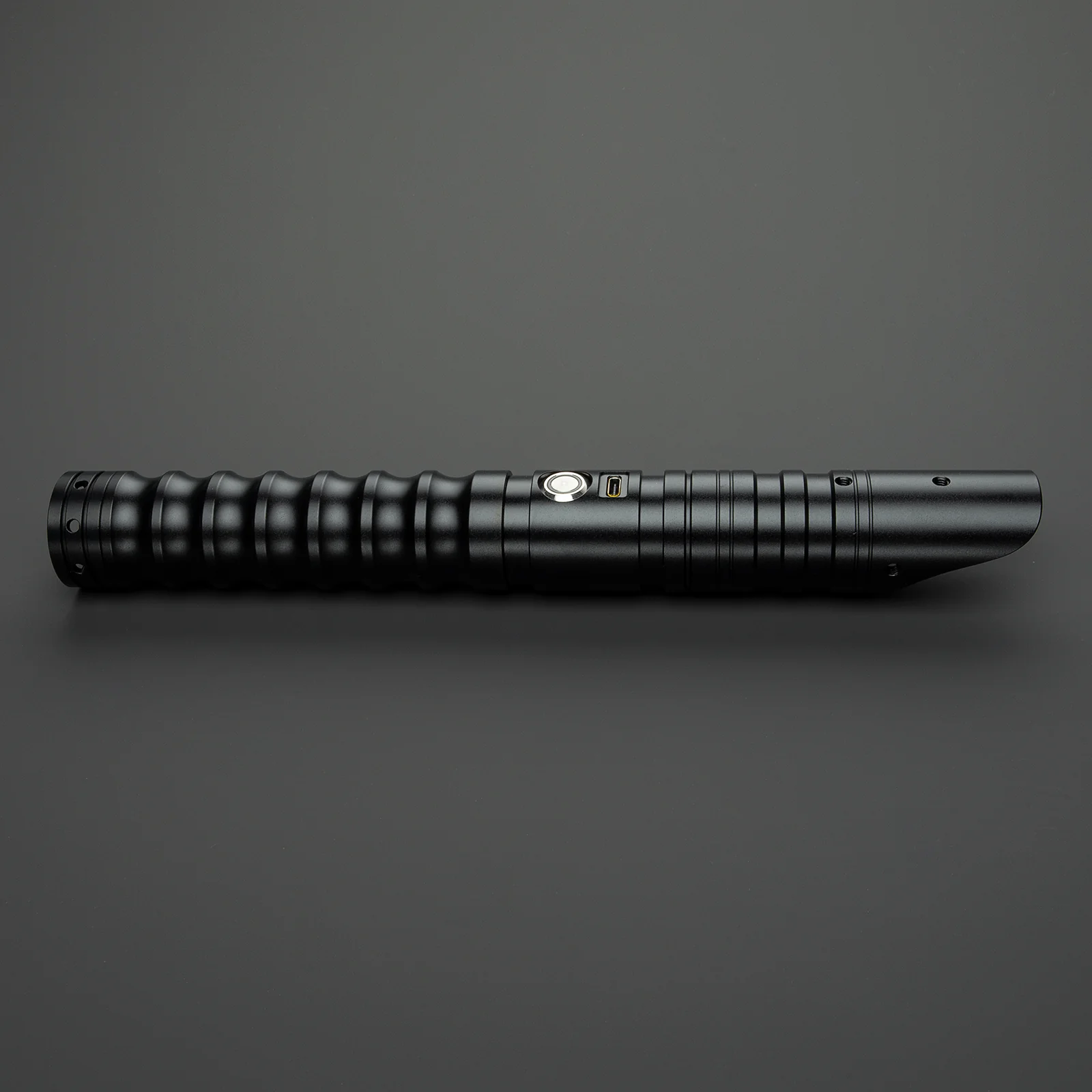 Beschrijving: Protege is een volledig zwarte saber gemaakt van aluminium. Dit zorgt ervoor dat het handvat licht van gewicht is en toch erg sterk is. Dit is misschien wel de perfect instap saber zonder in te leveren op kwaliteit. Het handvat is voorzien van vinger vormige uitkepingen waardoor de saber super stevig vast gehouden kan worden en niet snel uit je handen zal glijden tijdens het duelleren of spinnen. De emitter is schuin afgesneden wat de Protege een sjieke afwerking geeft. Aan de onderzijde van de saber bevind zich een ingebouwde connectorring. Met een tweede saber zoals bijvoorbeeld de Acolyte hoef je dus niet een extra connectorring te kopen om een saberstaff te maken. De vlakke onderzijde zorgt er tevens voor dat de saber perfect stevig recht op gezet kan worden om te worden tentoongesteld in huis.